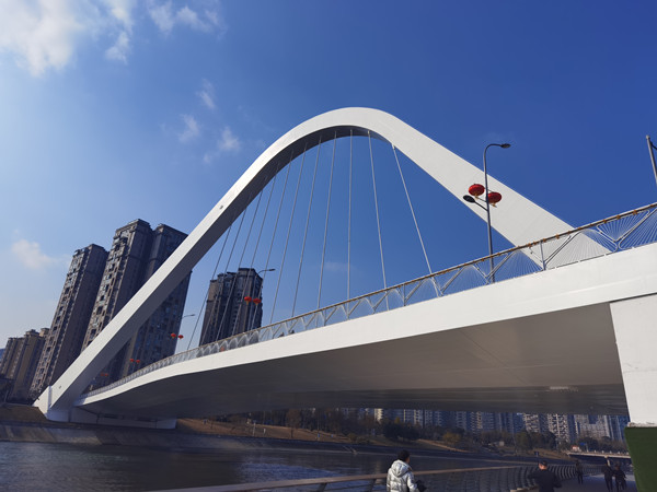 錦言大橋位于四川成都市金融總部商務區(qū),“成都金融總部商務區(qū)” 是四川省乃至我國西部地區(qū)金融業(yè)發(fā)展和金融機構聚集的核心承載區(qū)。錦言大橋是成都金融總部商務區(qū)中連通錦江兩岸,連接高新區(qū)、錦江區(qū)兩個區(qū)域的重要橋梁。錦言大橋橋下錦江為VI級航道,主梁單跨138米,橋寬30米,主拱跨徑135米,結構為空間異形鋼拱橋,橋梁總面積約為4140平方米。