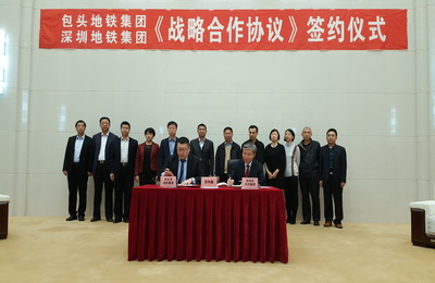 2016年12月5日下午,深圳地鐵集團(tuán)有限公司與包頭市地鐵投資(集團(tuán))有限公司簽署《戰(zhàn)略合作協(xié)議》。深圳地鐵集團(tuán)林茂德董事長、陳賢軍財(cái)務(wù)總監(jiān)、相關(guān)部門負(fù)責(zé)人,包頭市政府張建中副市長、馬富副秘書長,包頭地鐵集團(tuán)王勇董事長、鮑云飛黨委書記及班子成員等20多人出席簽字儀式并交流座談。