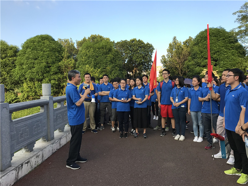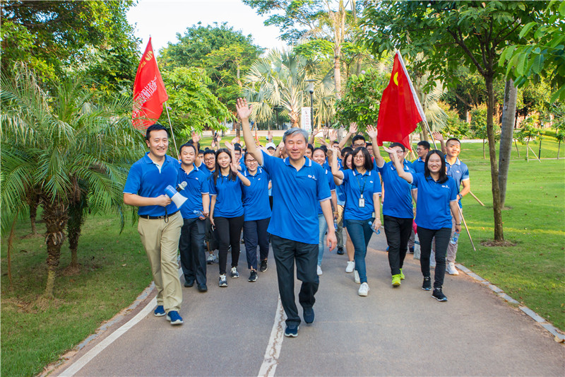 時(shí)節(jié)正初秋,諸君結(jié)伴游。當(dāng)天下午,董事長(zhǎng)陳宜言大師率近150名青年員工統(tǒng)一著裝,參與了“慶國(guó)慶 迎中秋”健走活動(dòng),員工們排著整齊的隊(duì)伍、邁著矯健的步伐、意氣風(fēng)發(fā)地朝著中心公園前進(jìn),健步走隊(duì)伍宛如一條藍(lán)色的市政蛟龍穿梭于中心公園。員工個(gè)個(gè)興致高漲,盡情享受秋游健走之樂(lè)。健走期間,董事長(zhǎng)精彩的知識(shí)科普,更是將健步走活動(dòng)的興致推向頂峰。青年員工們?cè)趶?qiáng)身健體之時(shí),也學(xué)習(xí)了更多的知識(shí)?!霸轮杏锌驮址N,世上無(wú)花敢斗香”,雖因地域和氣候原因,無(wú)菊無(wú)桂可賞,但與大師及眾多同事同行,濃濃的“家文化”氤氳其間,可以說(shuō),縱使花中第一流,亦可憑此斗花香!