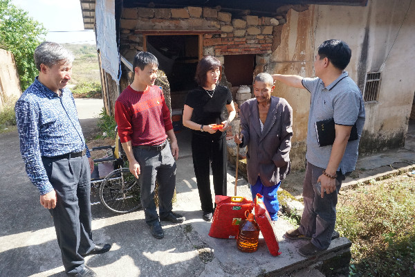黨委書記、董事長陳宜言一行在貧困戶家庭走訪慰問中,詳細詢問、了解了扶貧戶的身體狀況、家庭收支和子女教育等方面情況,真切感受他們的疾苦冷暖與愿望心聲,每到一處,都鼓勵他們要振作精神,堅強面對生活中的坎坷和挫折,要增強脫貧致富的信心和決心,發(fā)揚自力更生、艱苦奮斗的精神,要結(jié)合自身實際,做好產(chǎn)業(yè)發(fā)展規(guī)劃,爭取早日脫貧致富。慰問的同時,還為扶貧戶送去慰問物資和慰問金,并祝福老人家們身體健康、萬事如意。