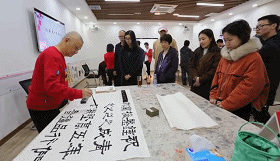 一入會場,便感受到四溢的濃濃墨香。四位老師揮毫潑墨,書畫傳情,用自己的作品傳達了對市政院新一年的祝福以及對廣大青年員工成長成才的期盼。厚重的翰墨與飛揚的青春在這里碰撞交融,在場青年員工們興致盎然,細品書畫之美,驚嘆各位書畫家的藝術水平,爭相與在場老師們交流,現(xiàn)場不時掌聲連連。