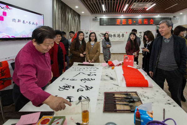 “丹青吐彩,翰墨飄香”。1月28日下午,公司“迎新春·書畫會”活動在市政設計大廈一樓報告廳舉辦,著名書畫家魏治平、鄒國榮、丁廣瑋、徐怡受邀前來,公司黨委書記、董事長陳宜言及黨委副書記、紀委書記、工會主席郭明出席了此次活動。本次活動吸引來自各部門共80余名青年員工參加。