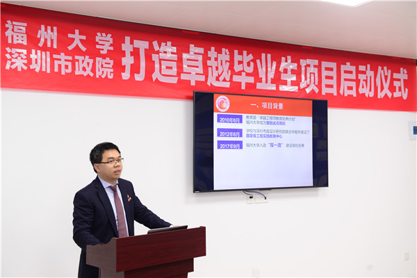 張星副校長對(duì)本次參會(huì)的深圳市政院領(lǐng)導(dǎo)及企業(yè)導(dǎo)師表示感謝。他指出,校企合作打造卓越畢業(yè)生對(duì)校企雙方實(shí)現(xiàn)人才培養(yǎng)計(jì)劃具有重要意義。工科教育最重要的是實(shí)踐教育,打造卓越畢業(yè)生項(xiàng)目是“新工科”中很好的一個(gè)實(shí)踐。學(xué)生要珍惜這次機(jī)會(huì),努力在畢業(yè)設(shè)計(jì)中取得優(yōu)異的成績,并預(yù)祝項(xiàng)目取得圓滿成功。