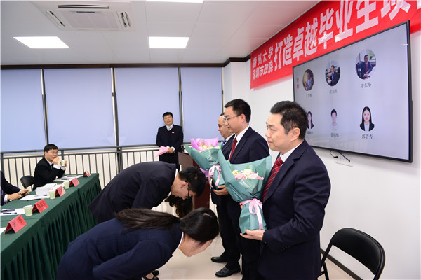 學(xué)生代表向?qū)煫I(xiàn)花
