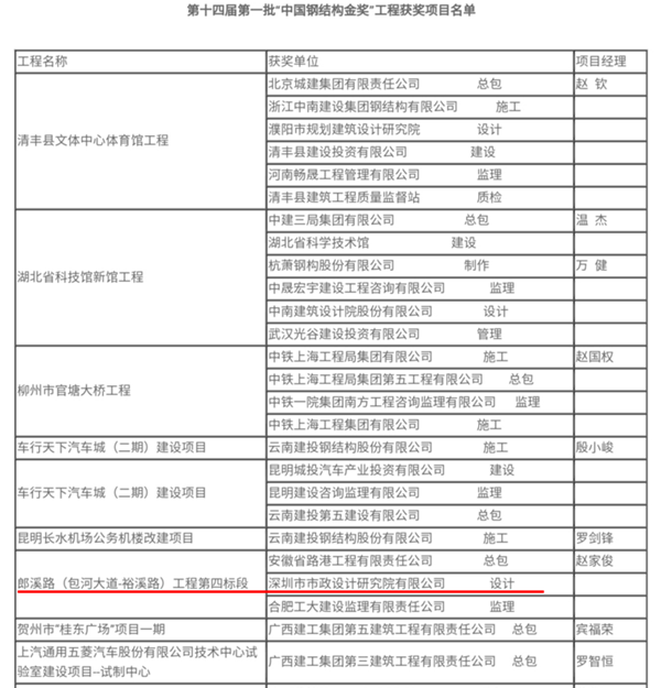 近日,由市政院勘察設(shè)計(jì)的合肥市郎溪路工程第四標(biāo)段獲得第十四屆“中國(guó)鋼結(jié)構(gòu)金獎(jiǎng)”。