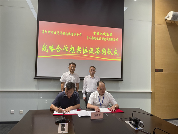 9月14日,深圳市政院與中國電建集團華東勘測設計研究院有限公司(以下簡稱“華東院”)正式簽署了戰(zhàn)略合作協(xié)議,深圳市政院董事長劉樹亞及相關職能部門、生產(chǎn)單位的負責人,華東院總經(jīng)理時雷鳴、副總經(jīng)理郭忠、臧延偉及相關職能部門、生產(chǎn)單位的負責人參加了簽約儀式。