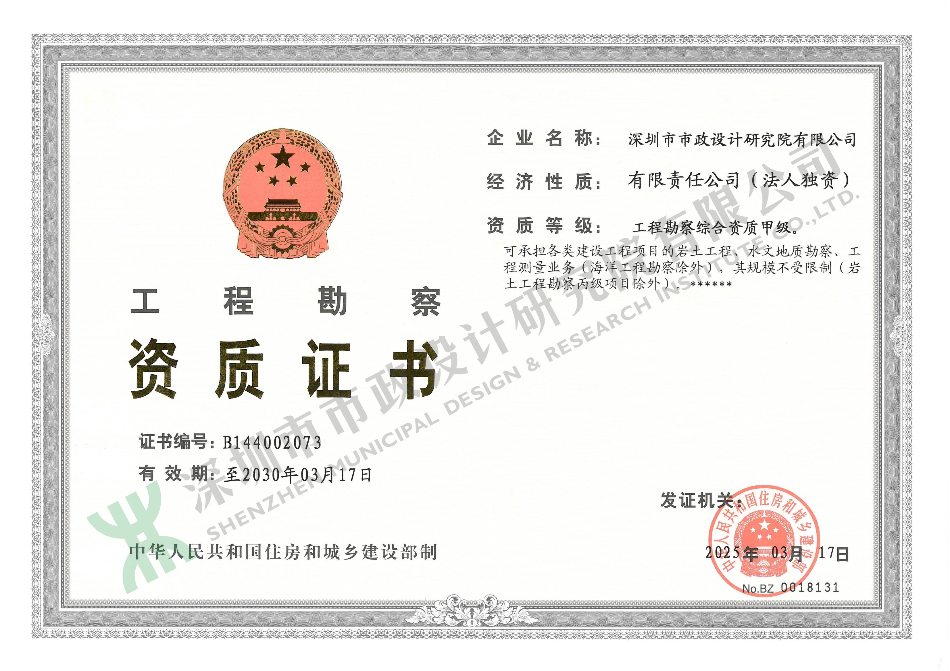 工程勘察資質(zhì)證書(shū)
