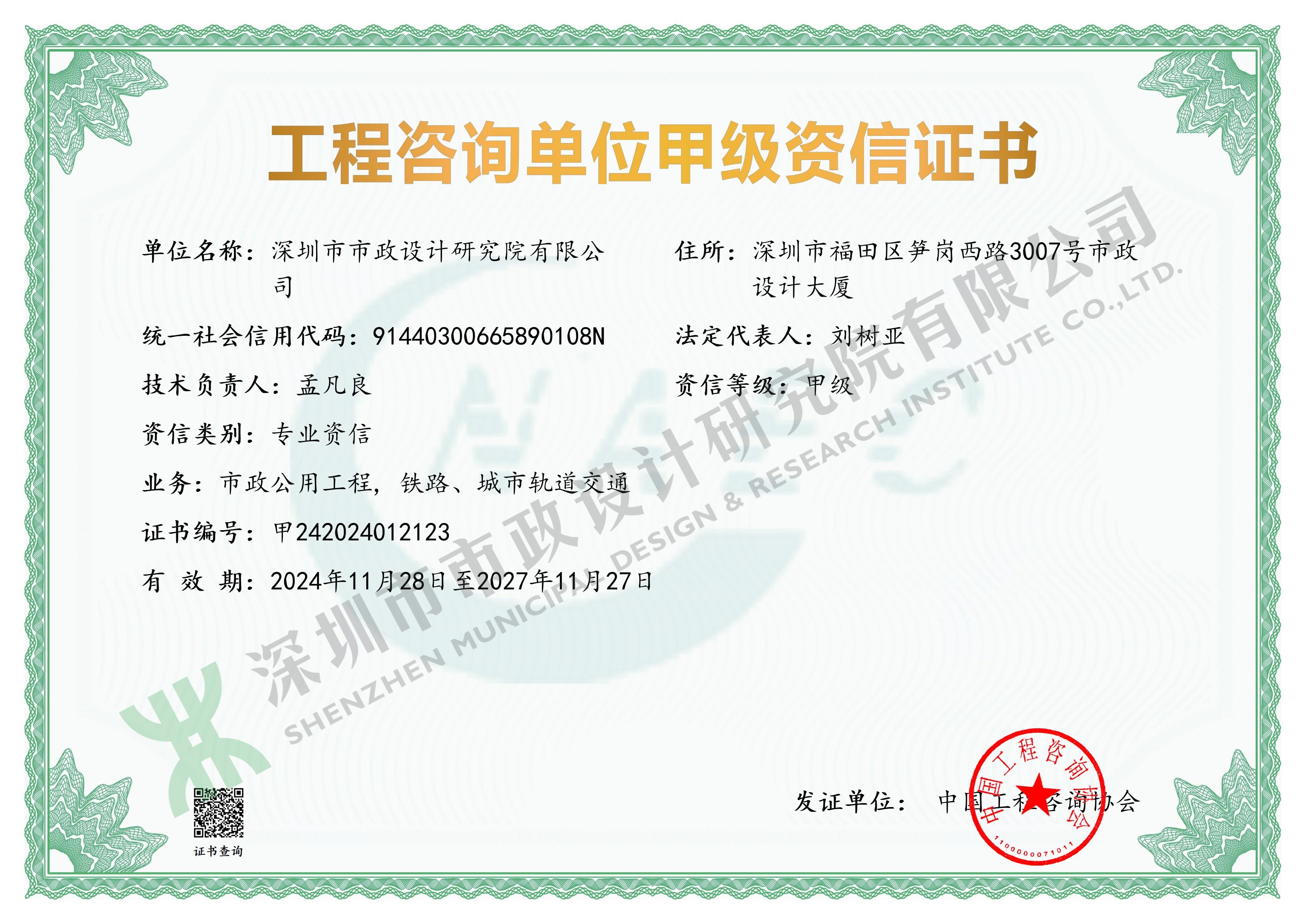 工程咨詢(xún)單位甲級(jí)資信證書(shū)